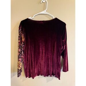 Jessica & Max Burgundy Velvet Floral Print Wrap Top Long Sleeve Women XL