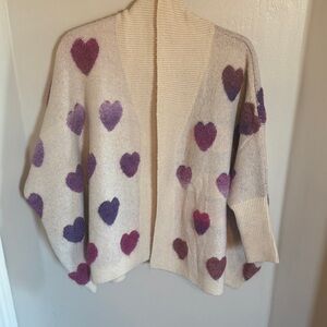 Hardly worn. Charming cardigan with heart pattern. Soft and warm. Perfect for layering. This is ONE SIZE fits most but I’m marking as a small.