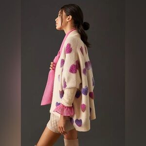 Anthropologie Heart Cardigan Purple Pink Cream