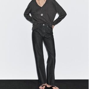 Massimo Dutti Black High-Rise, Straight Leg Jeans.