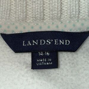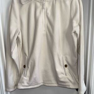 Lands End Quarter Zip White Women’s L 14/16 Fleece Thick Collar Button Pockets