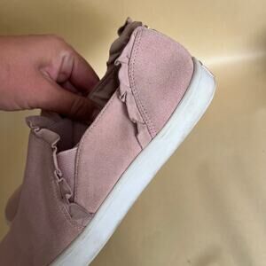 Kate Spade Lillie Pink Suede Ruffle Slip-On Sneakers Leather Upper Size 8.5
