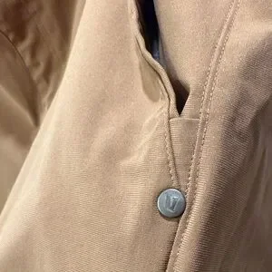 Classic tan flat front shorts by Vuori. Features zipper and button closure, front slant pockets, back slit pockets. Comfortable, stretchy fabric, perfect for casual days.