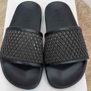 Brunello Cucinelli Black Mesh Slide Sandals