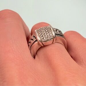SCOTT KAY DIAMOND STERLING SILVER BASKETWEAVE EQUESTRIAN LADY'S RING