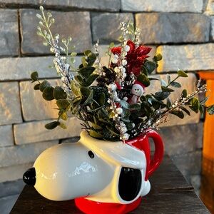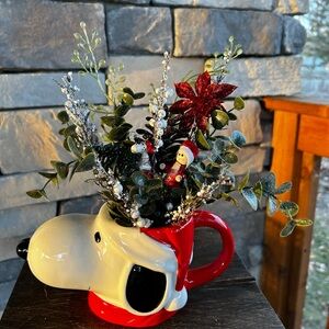 Celebrate the holidays with this charming red and white mug featuring a delightful Snoopy design. Perfect for adding a touch of festive cheer to your home decor.