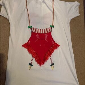 Vintage Festive White T-Shirt Red Lingerie Print, Funny, christmas, Santa, M