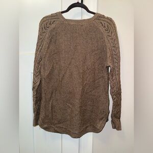 Stylish khaki sweater with detailed sleeves. Perfect for everyday comfort.