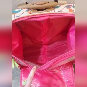 One zipper missing on top of the bag, but I'm sure it's mendable. Literally, never used. Everything is clean and even with its original paper. No odors or tears. Please text me if you have questions or best offer! 👍Charming bag with vibrant bird print. Features sturdy handles and front pocket. Ideal for travel or daily use.