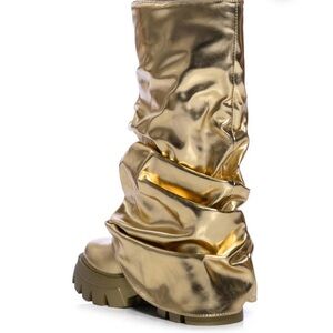 Step out in style with these lustrous gold heeled boots. Perfect for adding a touch of glamour to any outfit, these boots combine elegance with comfort.
