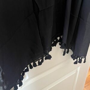 New! Nordstrom Black Viscose Kimono ruana style with Fringe OSFM