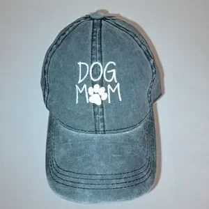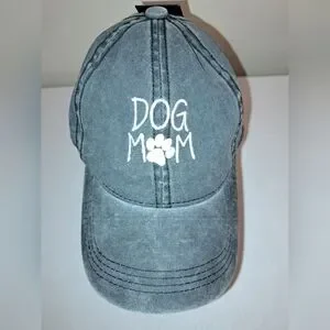 New, with tags, David and Young adorable "Dog Mom" baseball cap for all the proud fur mommies! Super cute and vintage Y2K acid washed grey color with ponytail opening and adjustable strap for comfortable sizing.