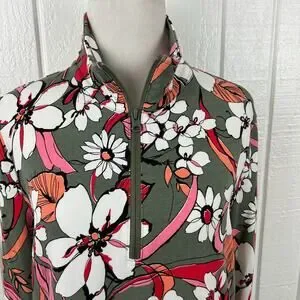 Talbots Women Long Sleeve 1/4 Zip Sweatshirt Jacket Top Green Winter