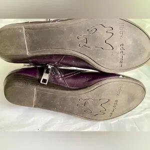 Stylish purple animal croc-embossed ankle boots. Sleek design with a modern touch. Scuffs as shown in photos.