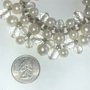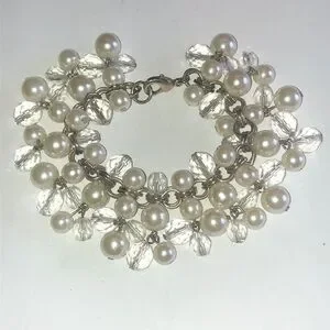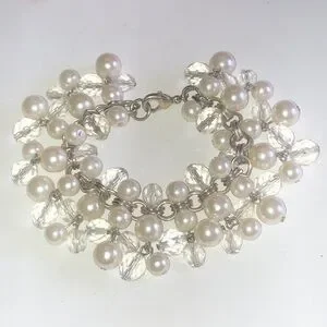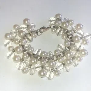 Silver Tone Faux Pearl & Clear Beads Chunky Boho Beaded Bracelet