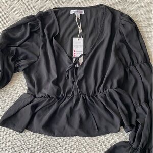 NWT ASOS Black Tiered Long Sleeve Blouse Top