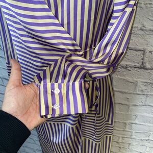 Mango (MNG) Satin Purple & Cream Striped Wrap Dress. Mid Length. Size 8.