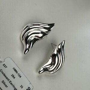 Sculptural silver-tone croissant-style earrings featuring smooth, folded curves for a bold and modern look. Their high-shine finish adds instant polish to any outfit, perfect for everyday wear or an elevated night-out style.