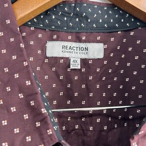 Kenneth Cole Reaction Shirt Men 4X Geometric Burgudy Short Sleeve Button Down