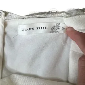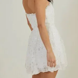 NWT White Altar'd State Demi Embellished Strapless Mini Dress. Heavily detailed you will light up the room with the embellished beading, sparkles, and 3 dimensional florals through out the entire dress. Other details include pockets! A three clasp sown in bra strap and a metal high quality zipper. Perfect for any formal wear occasion, bridal, sorority, or graduation.