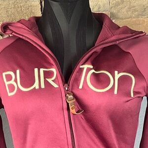 VTG Y2K Burton Snowboard DryRide WB Scoop Hoodie Fleece Layering Maroon Gold XS