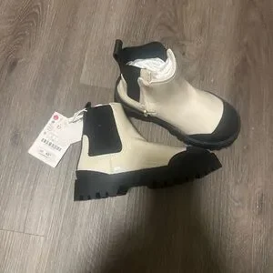 Stylish and durable kids boots in black and cream. Perfect for any adventure.