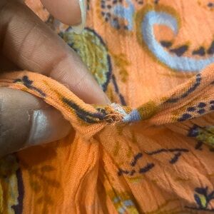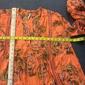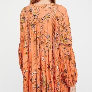 Free People Tunic Just The Two Of Us Mini Dress Orange Multi XS Paisley Oversize Flowy Cutout Elastic Cuff Balloon Sleeve Beach Party Hippie Boho Fairy Whimsical