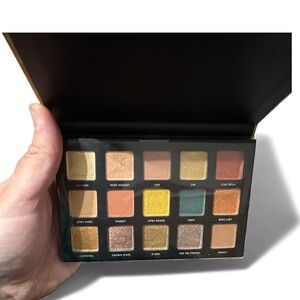 Milani eyeshadow palette featuring a variety of rich shades. Includes gold, green, and brown tones. Perfect for versatile looks. Unused but side tape is loosened so not completely sealed as if new