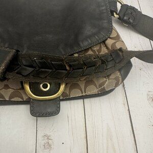 Coach Black Leather Bleeker Beige Canvas C’s Flap Shoulder Bag 11434 10” PROJECT