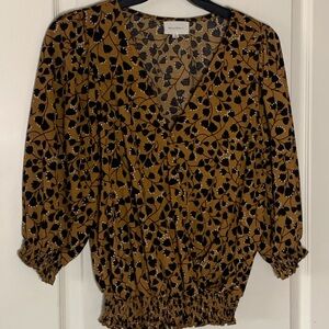 Women’s Melloday Size Small Floral Print Puckered Sleeves Blouse