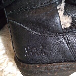 Super cute boots! Wide shoe box. Genuine leather and sheepskin. One of the soles has a small hole- stepped on a sharp twig! Doesn't affect the boot. Many more miles to go!