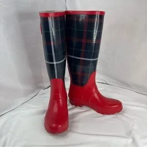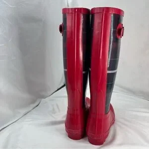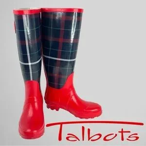 TALBOTS Women's Red Plaid Mid-Calf Rain Boots Size 6 Waterproof