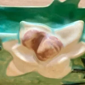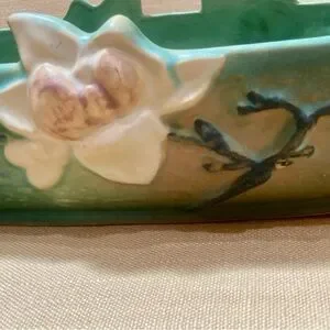Vintage Art Console Roseville Magnolia Pottery. Handled rectangular Green/Pink.