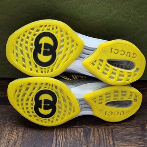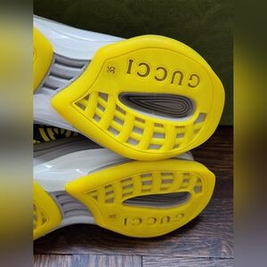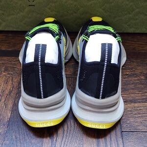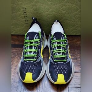 $735 Brand New Gucci Technical Knit Women Running Sneakers Multicolor features rubber trim, lace up closure and interlockikg G logo.