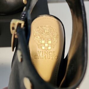 Vince Camuto Black and Gold Heeled Boots with Studded Detailing