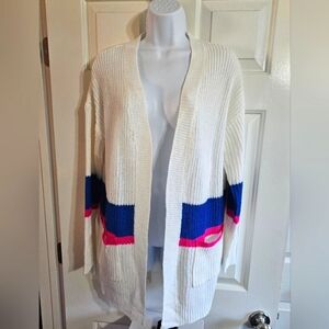 Ultra Flirt White Oversized Open Cardigan Blue Pink Bold Stripe Y2K Preppy M VTG