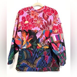 FARM Rio Lilac Mixed Print Multicolored Botanical Oversized Sweatshirt Sz Small