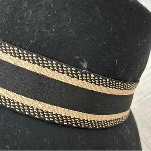 Stylish look-a-like Dior bucket hat. Black with tan accents. Perfect for a chic look with a touch of French humour. Made in black felt, excellent condition apart from a small tone on tone stain, see last pic. Adjustable.