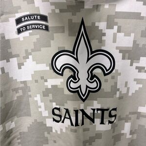 NWOT Camo hoodie with Saints logo and American flag patch. Comfortable and stylish.