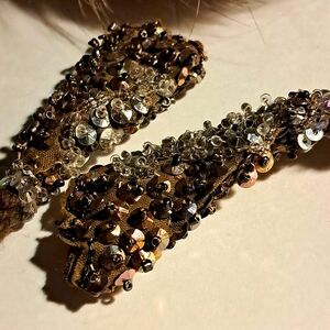 • I added metallic "sequined and beaded" brown color fabric "cones detail" at tie ends for bling sparkle and flare (☆ I CAN EASILY REMOVE THEM FOR YOU ☆)