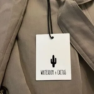 Elevate your style with this elegant beige double collar trench coat. Perfect for any occasion, it offers a timeless look and comfortable fit. size Small but fits oversized like a Medium. Adjustable belt on sleeves and waist. LA style designer purchased at Grit and Grave locally.