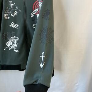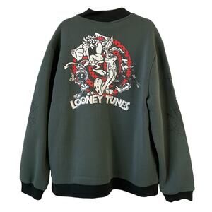 Warner Bros Y2K Looney Tunes Bomber Jacket Men XL Gray Cartoon Graphic Print NWT