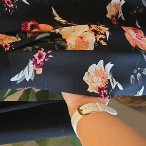 This chic long sleeve dress features a stunning black top with a floral patterned skirt. Perfect for any occasion, it combines elegance with comfort.