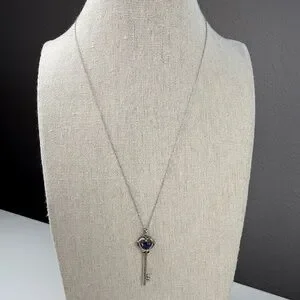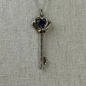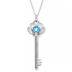Unlock elegance with this whimsical round-shape blue topaz and diamond accent key pendant necklace. (Also available in Lab Grown Blue Sapphire, Lab Grown Emerald, Lab Grown Opal, Lab Grown Ruby, Smoky Quartz and Lab Grown White Sapphire.