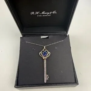 Macys Womens Sterling Silver 10K Gold Lab Grown Garnet Diamond Key Pendant