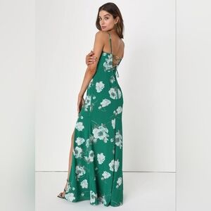Lulus Feeling Elegant Green Floral Print Lace-Up Slit Maxi Dress S Wedding Party. New without tags. See all pictures for details. Currently SOLD OUT online.