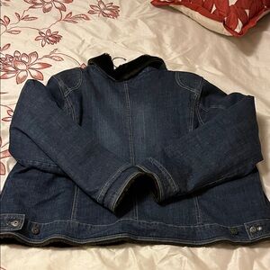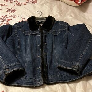 Women's Denim Jacket with Faux Fur Collar and Warm Lining -Size 26/28
