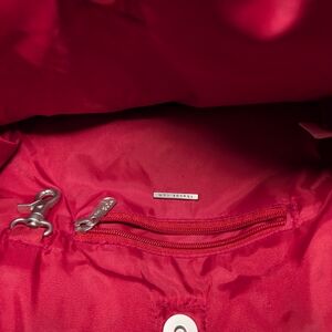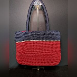 Chic tote bag with a navy and crimson design. Perfect for daily use. Features sturdy handles and a spacious interior.