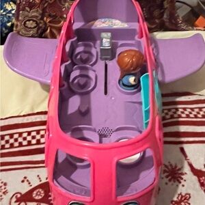Fisher Price Little People Barbie airplane -includes the original Barbie pilot, a second Barbie pilot and one other character that’s not original to the airplane. Plane in great condition with lights and sounds working.