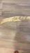 Wired canvas banner, cream canvas with gold falalalala script printed, banner was used in a garland, a few marks as shown, measures approximately 72” in length, width shown, wired to bend as desired, good used condition